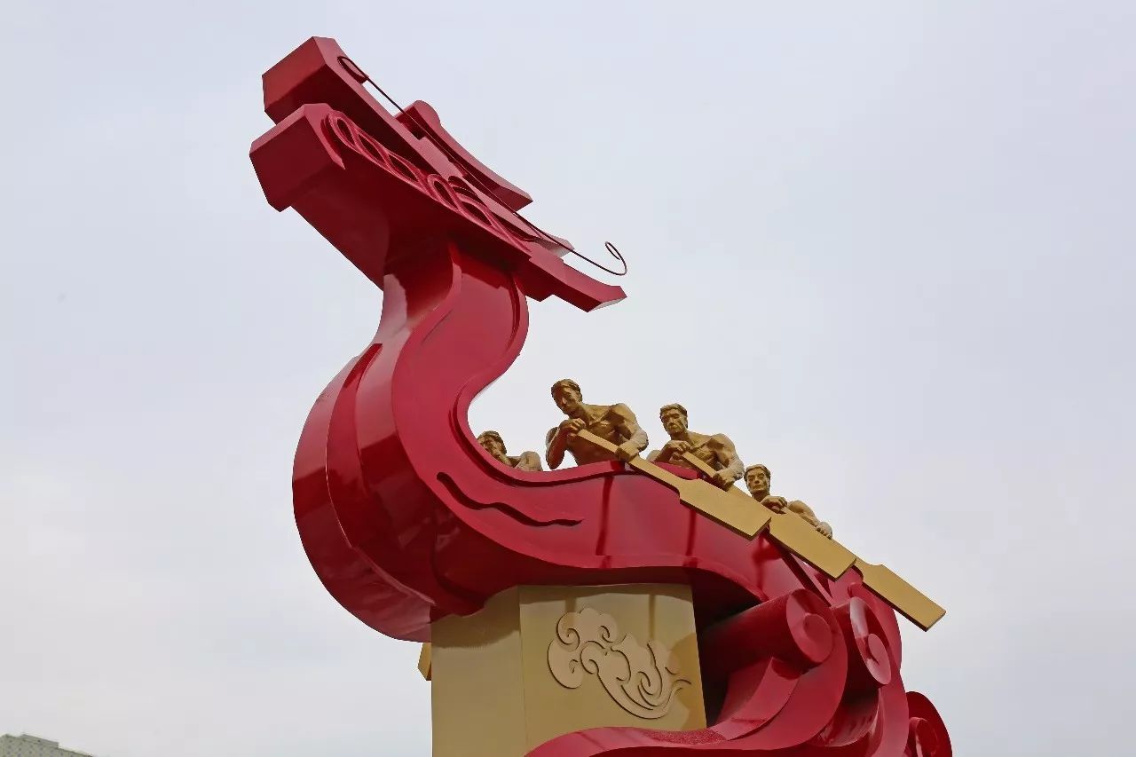 漳澎(和樂村)雕塑位于漳澎村委會廣場。漳澎村素有”游泳之鄉“、”曲藝鄉村“、”龍舟之鄉“之稱。雕塑結合漳澎村”Z、P“寓意標志,以龍舟競渡為原型,結合祥云水紋,以抽象及傳統圖騰手法相結合,造祥龍盤踞之勢,歡樂矯健之態,打造漳澎村和樂生平,安居樂業之意。