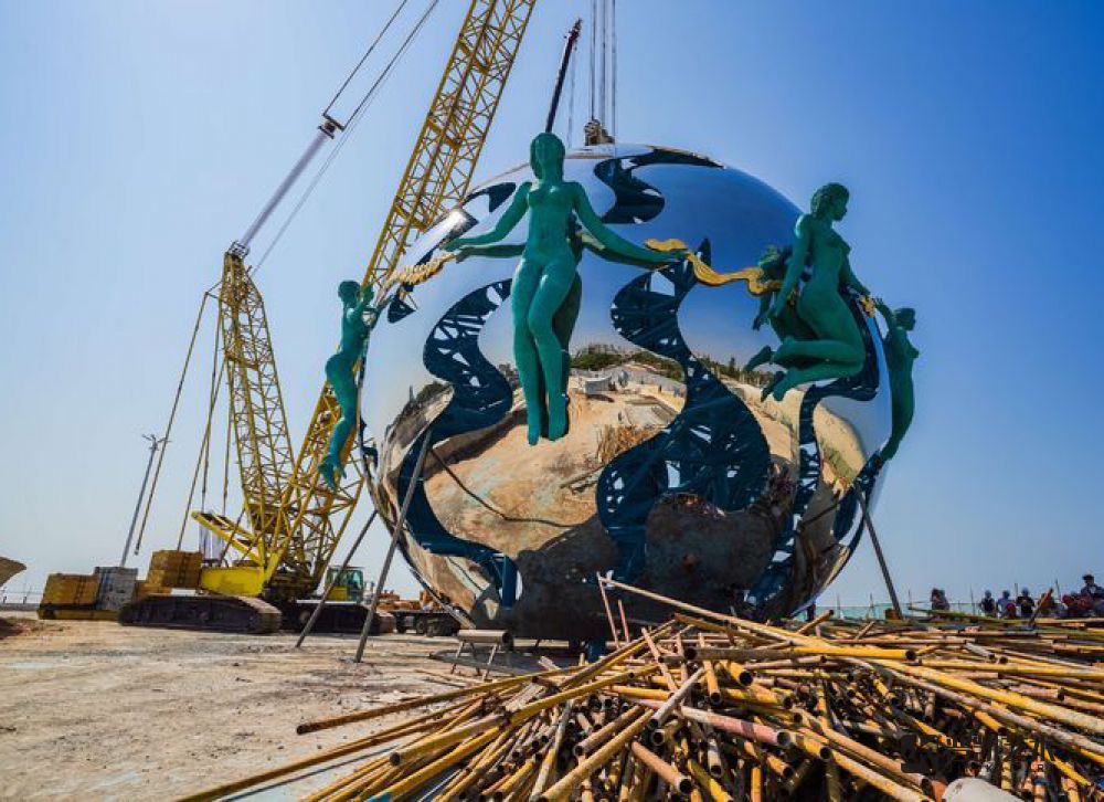 北海潮雕塑安裝在北海銀灘公園