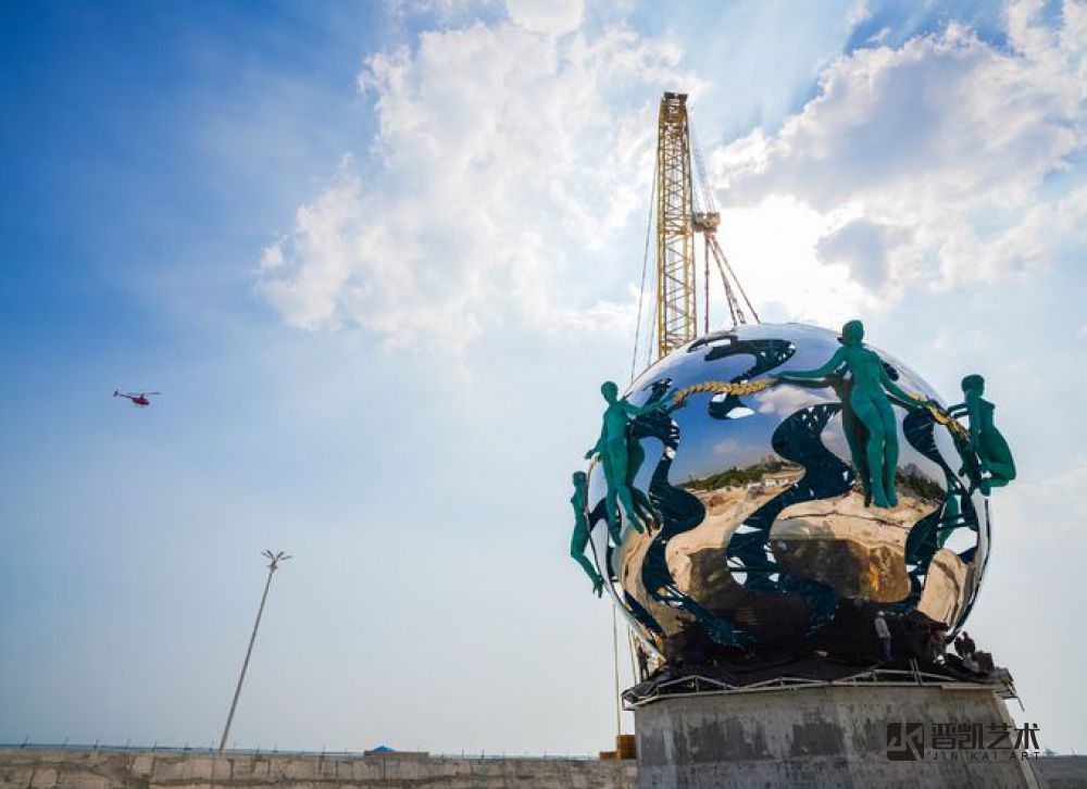 內骨架采用304不銹鋼無縫管制作,圓球表面采用316不銹鋼材質制作,人像采用錫青銅鑄造。
