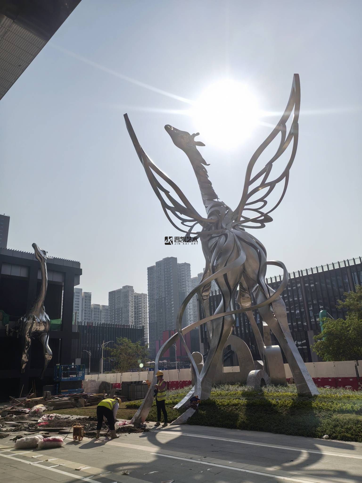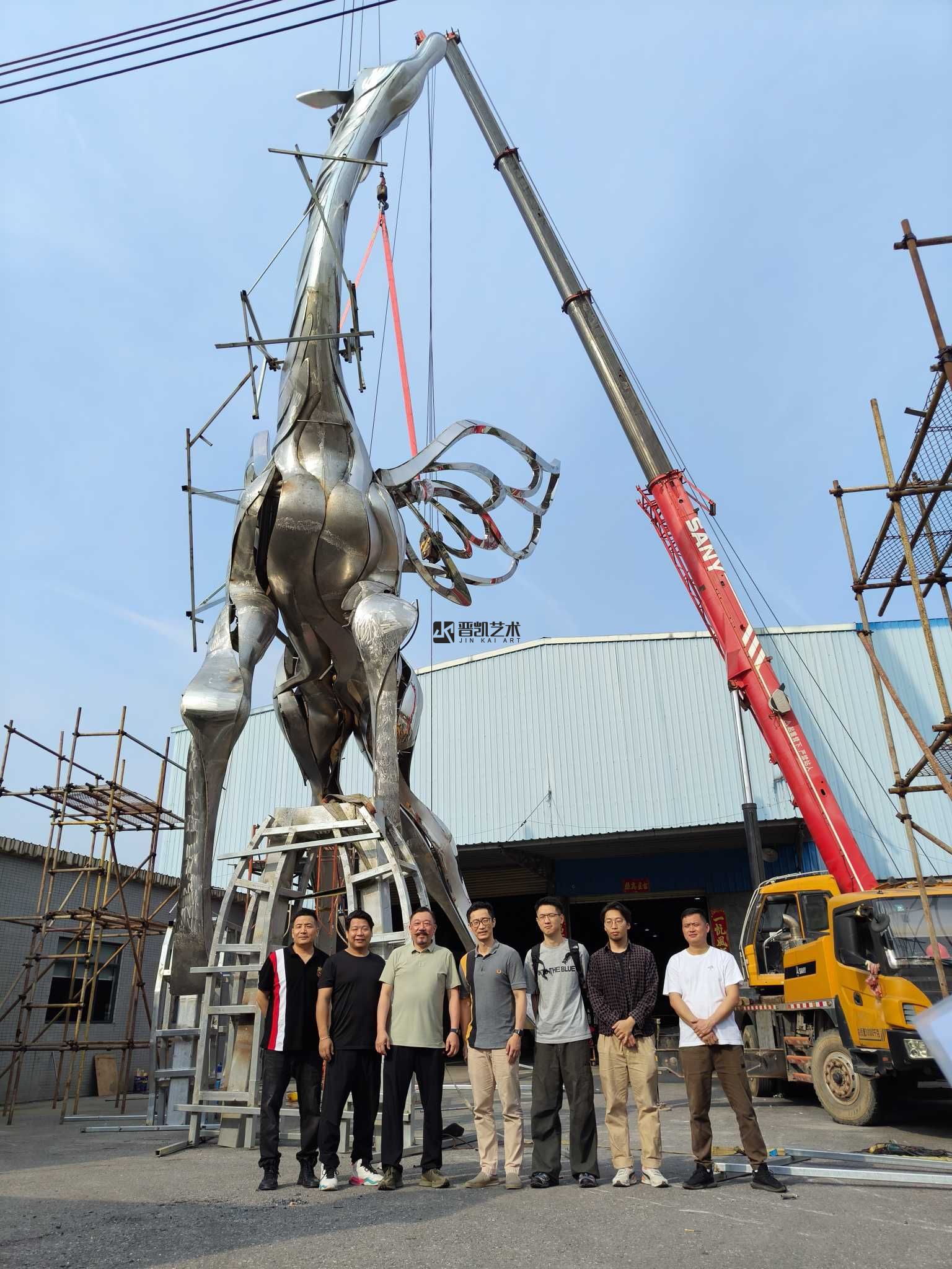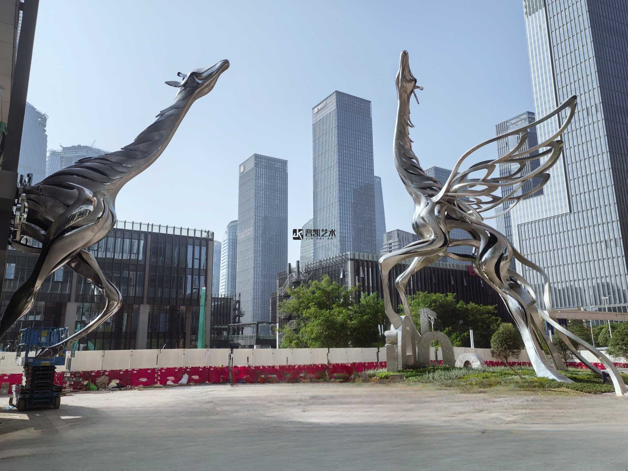 深圳前海招聯(lián)大廈前的不銹鋼《長頸鹿》雕塑已順利驗收,剛中藏柔,靜而蓄力。